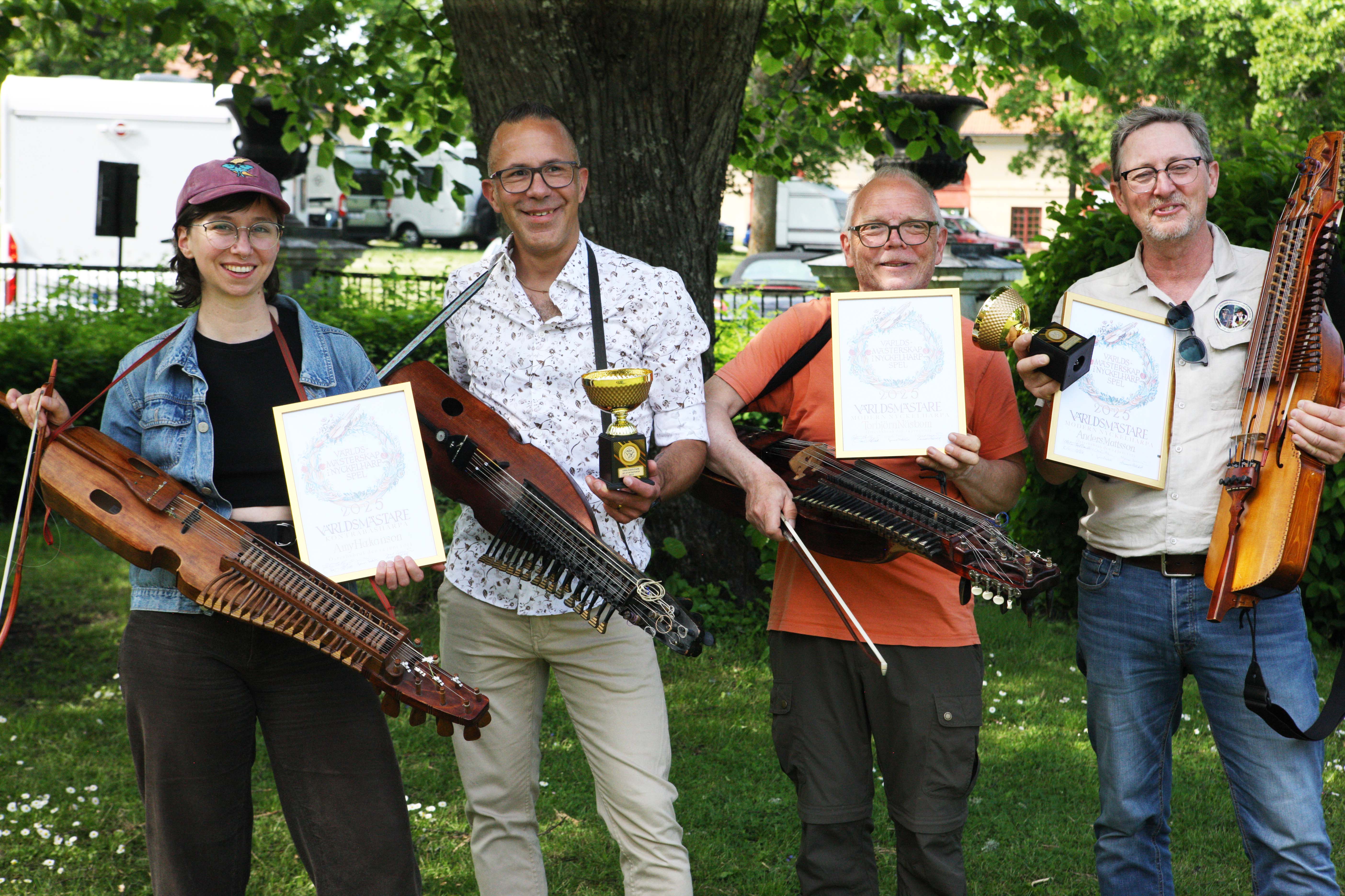 Världsmästarna i spel på nyckelöharpa, 2025. Ami Hakansson, Kristofer Suha Pettersson, Torbjörn Näsbom och Anders Mattsson OBS Lyssna på alla låtarna de framförde HÄR ![]() Vinnarlåtarna |