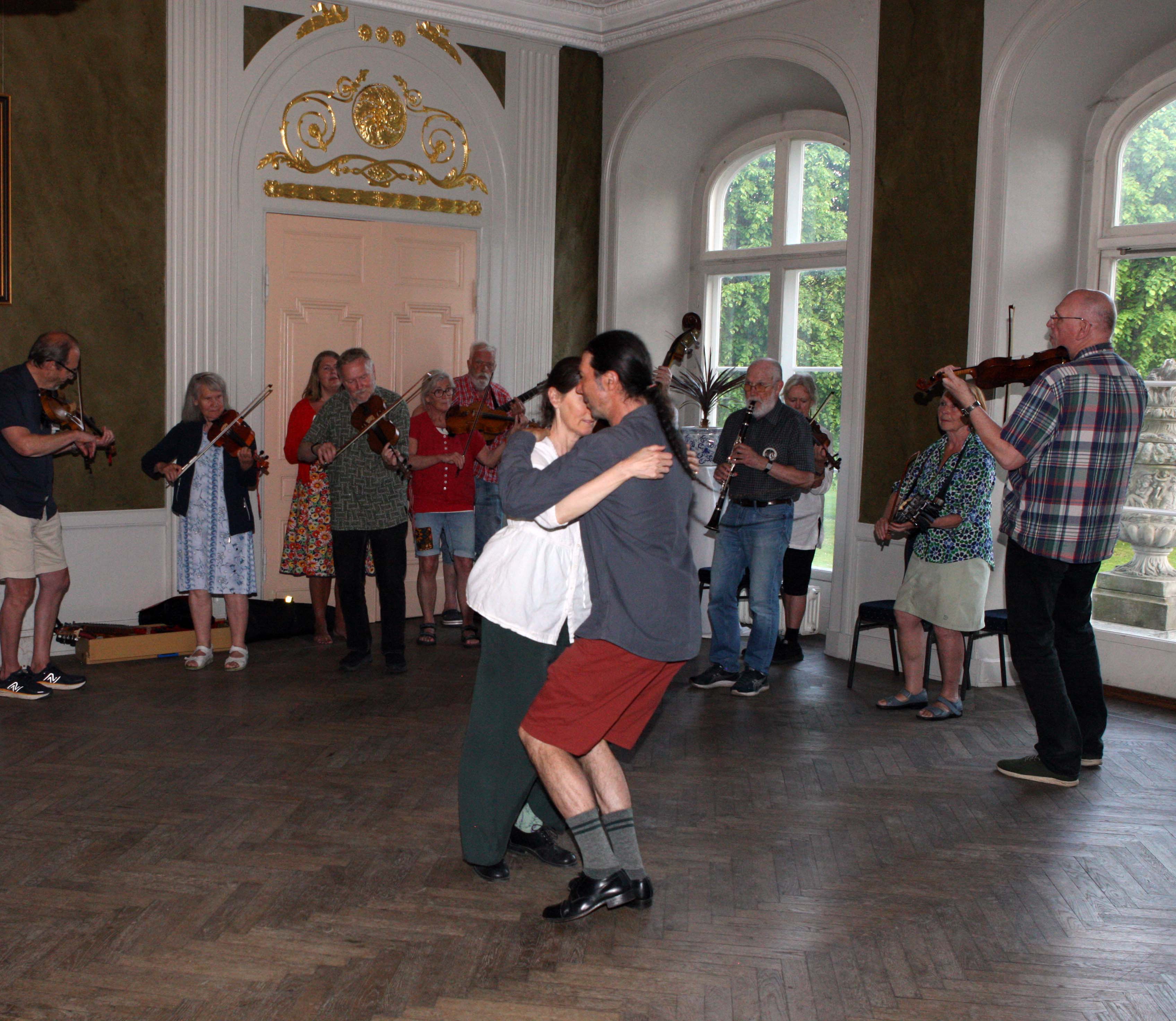 Glest på dansgolvet i herrgården på lördagseftermiddagen. Samtidigt hölls ju Gilledelen av stämman i hembyggdsgården och därefter VM i nyckelharpa i Kyrkans Hus |