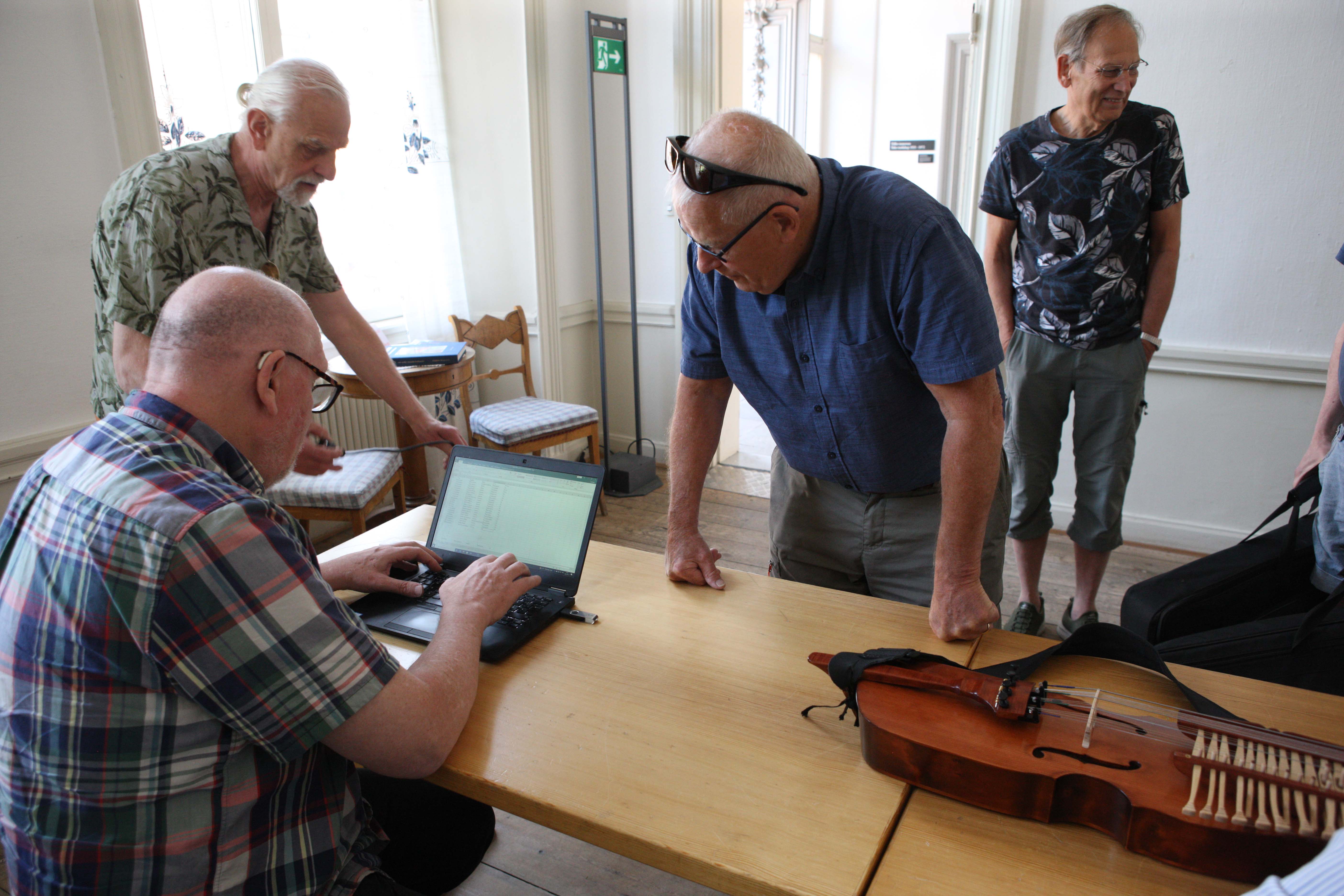 Ljudtekniker Henning Andersson i samspråk med Österby spelmän |